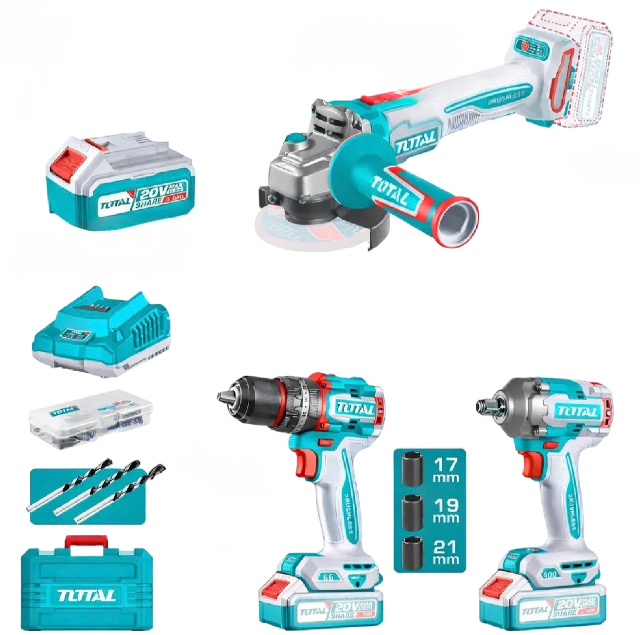 كومبو3*1شنيور دقاق66نيوتن+ صاروخ1000وات+دريل1/2"400ن +2بطارية4امبيرTOTAL
